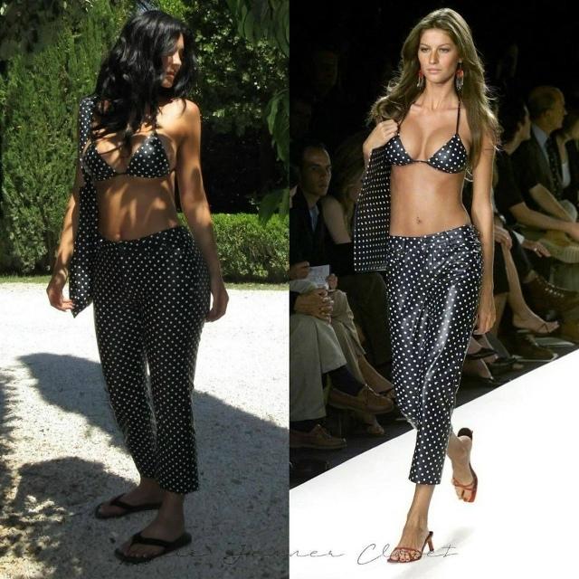 Горошек стал любимым принтом и для Кендалл, и для Кайли. Последняя даже прихватила в Европу винтажный комплект Ralph Lauren из 2000-го, который когда-то блистала на подиуме Жизель Бюндхен.