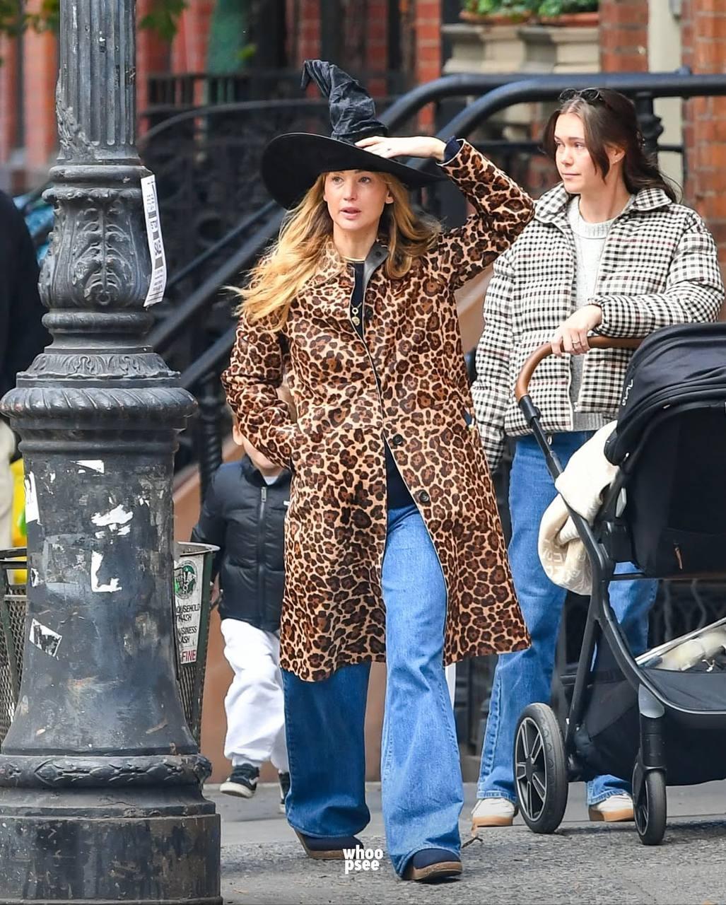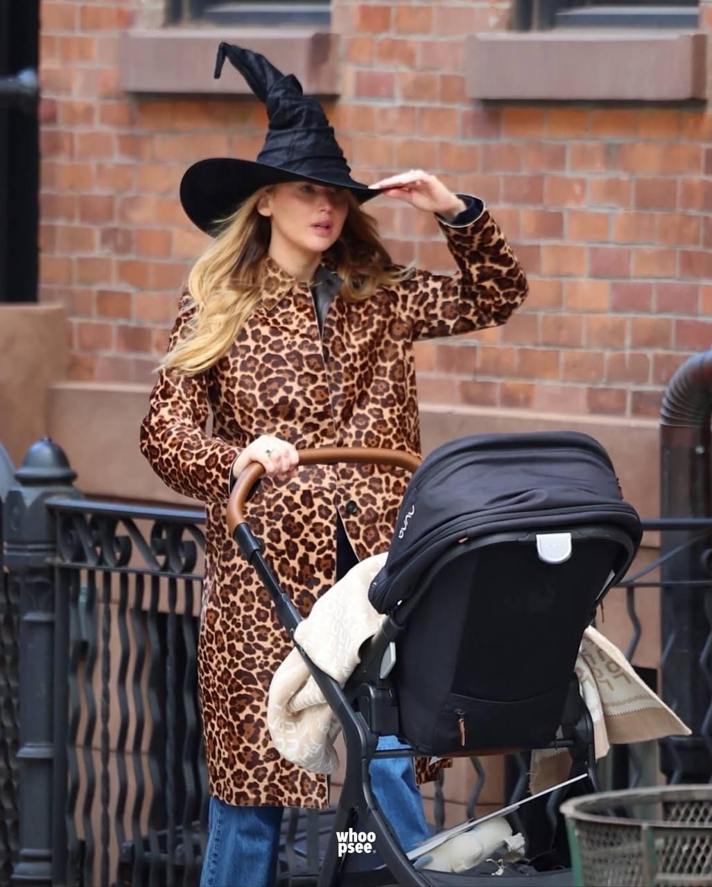 Дженнифер Лоуренс отметила Хэллоуин. Классный осенний лук актрисы на прогулке с сыном.