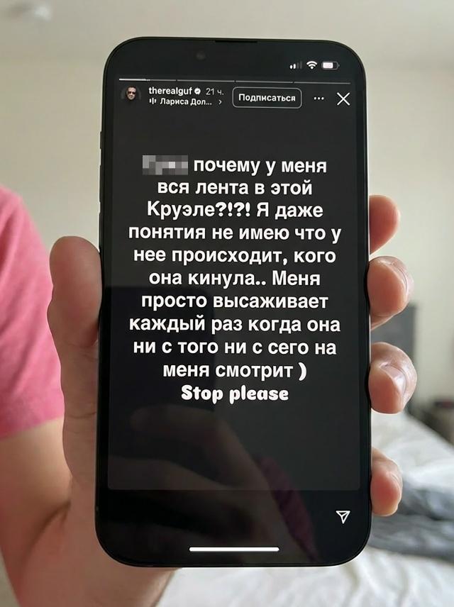 Причиной возмущения Гуфа стало то, что певица, по его словам, «полностью заняла его рекомендации» в социальных сетях. Рэпер заявил, что чувствует, будто Долина буквально «высаживает его взглядом» каждый раз, когда он видит публикации о ней в своей ленте.