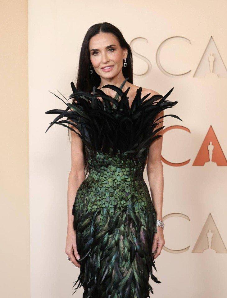На премьере в Остине Деми Мур продемонстрировала не только стильный образ с оранжевым поясом, но и возвращение к своим фирменным длинным волосам, отказавшись от короткого боба, который она «выгуливала» на показе Gucci в Милане