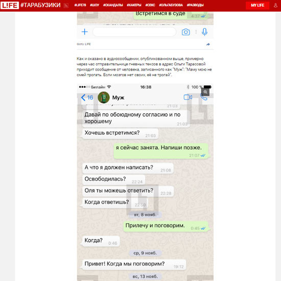 В переписке с мужем Дмитрием Тарасовым, опубликованной изданием , как мы можем видеть, Ольга не хочет обсуждать причины их разлада и договориться обо всем мирным путем. Более того, она не берет трубку. Кажется, футболист действительно серьезно ее обидел...